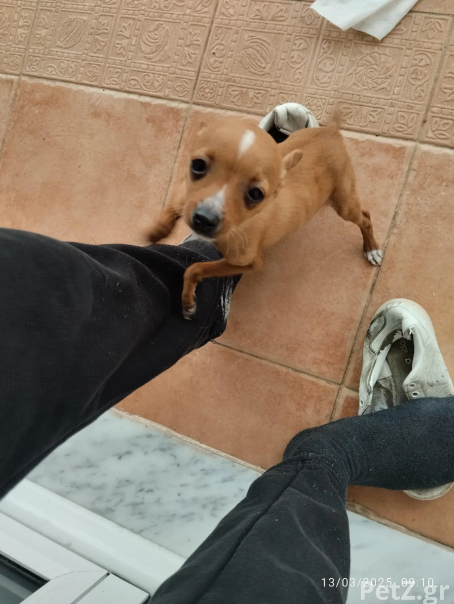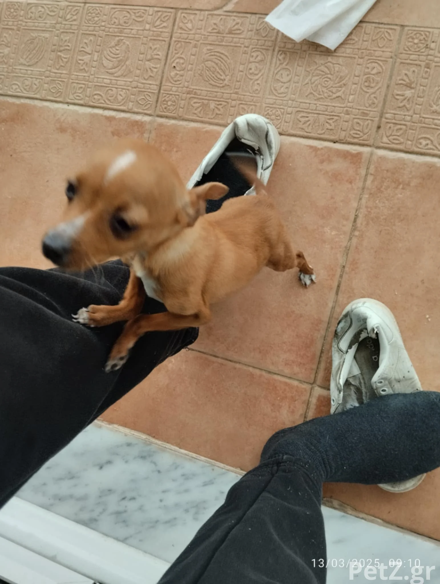 Αυτό το μπουμπουκακι 2 μηνών περίπου το βρήκα πηγαίνοντας για πεζοπορία, ευτυχώς έκλαιγε και την πρόσεξα μέσα στα χωράφια, ημίαιμο πινσερακι, έχει στραβά ποδαράκια, δεν βόλευε τον εκτροφέα και την παράτησε